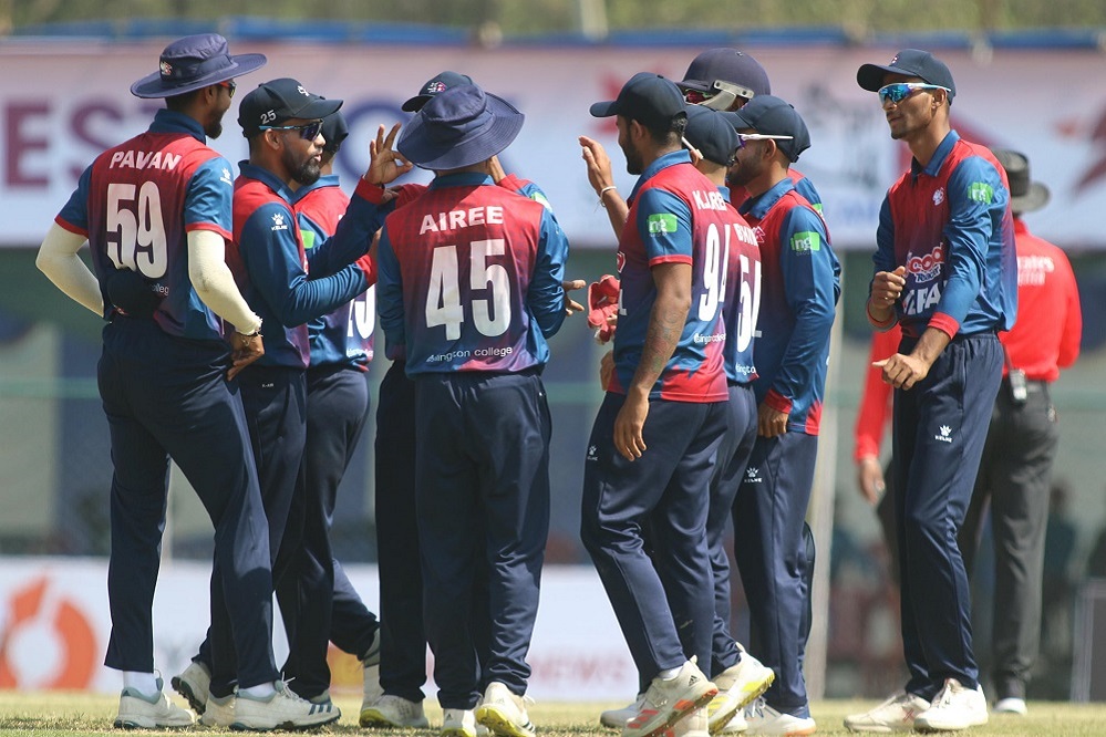कीर्तिपुरस्थित त्रिवि क्रिकेट मैदानमा आइतबार भएको खेलमा टस हारेर ब्याटिङको निम्तो पाएको नेपालले