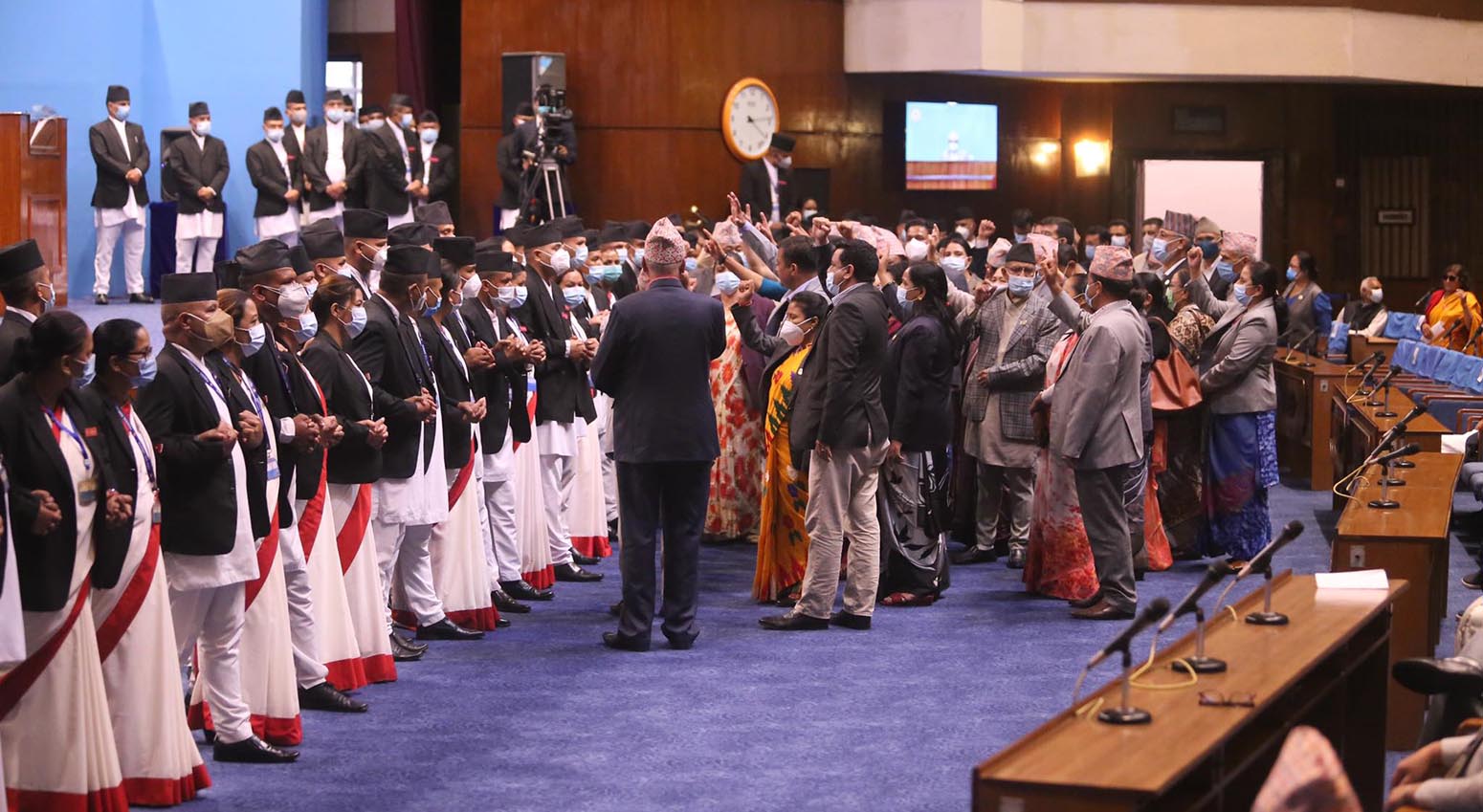 काठमाडौं, ११ कात्तिक।प्रतिनिधिसभाको बैठकमा एमालेका सांसदहरूले नाराबाजी लगाइरहेका छन् । प्रतिनिधिसभाको बिहीबारको बैठक सुरु हुनासाथ एमालेका सांसदहरूले नाराबाजी गर्दै अवरोध गरेका हुन् ।