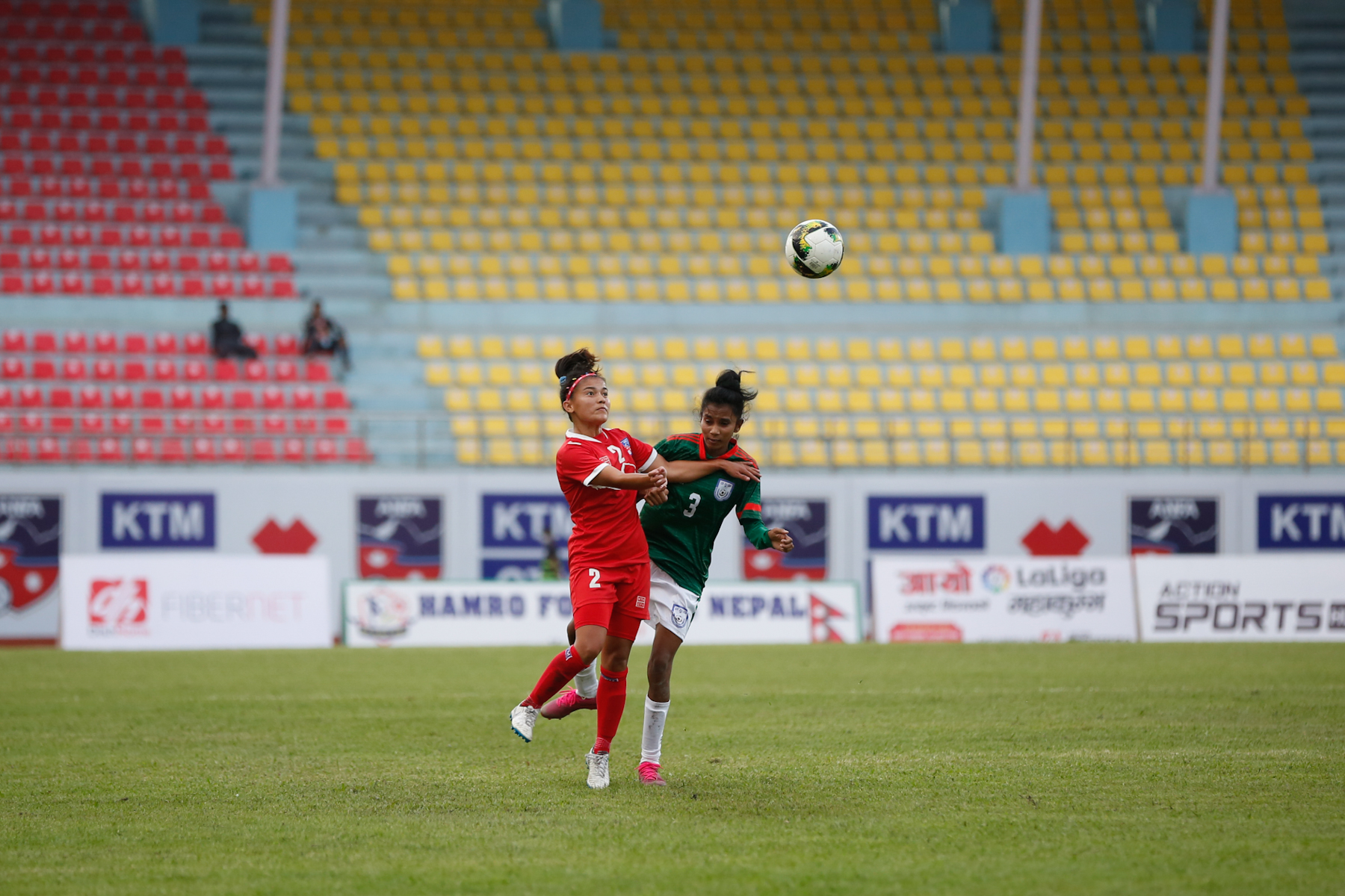 काठमाडौं । नेपाली राष्ट्रिय महिला फुटबल टिमले बंगलादेशसँग दुई मैत्रीपूर्ण खेल खेल्ने भएको छ । बंगलादेशसँग दुई खेल खेल्ने पक्का भएको अखिल नेपाल फुटबल संघ (एन्फा) ले हिजो जानकारी दिएको हो । नेपालले बंगलादेशी