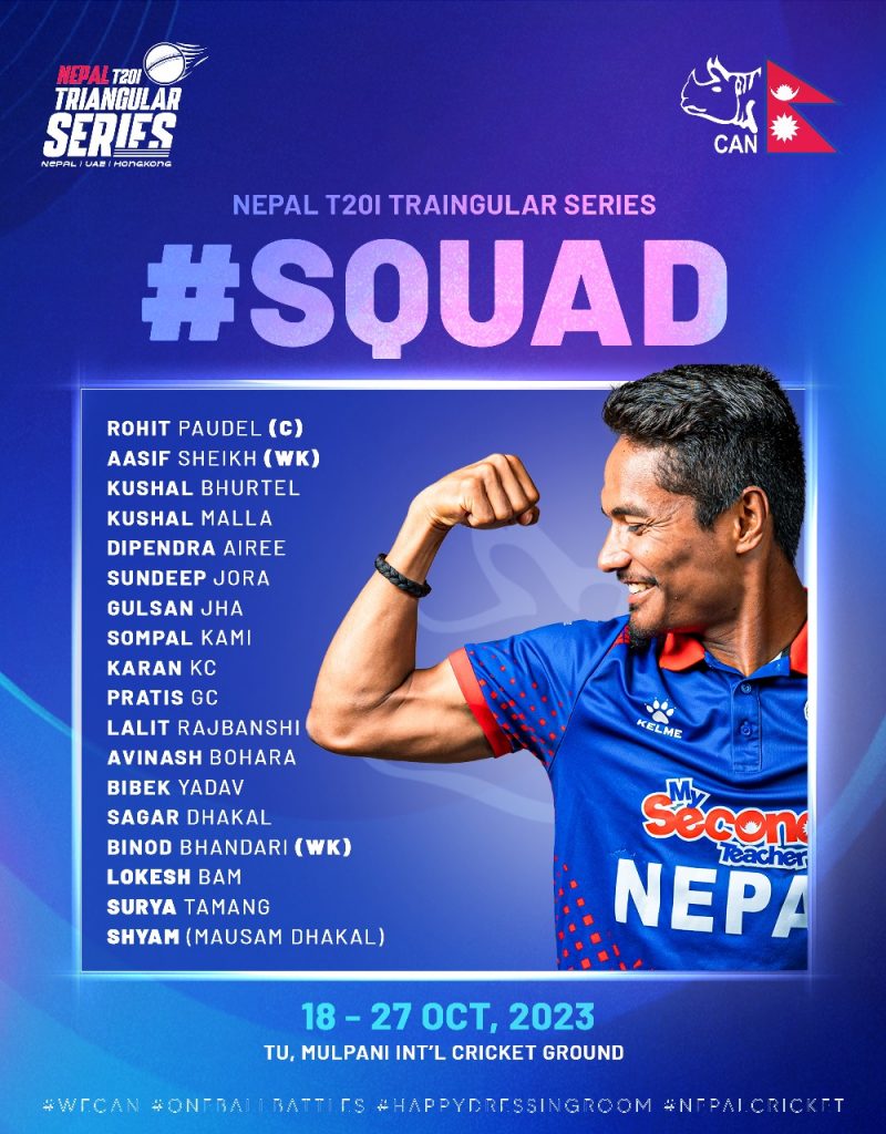 रोहित पौडेलको कप्तानीमा १८ सदस्यीय नेपाली टोली घोषणा गरिएको हो । टोलीमा सोमपाल कामी, करण