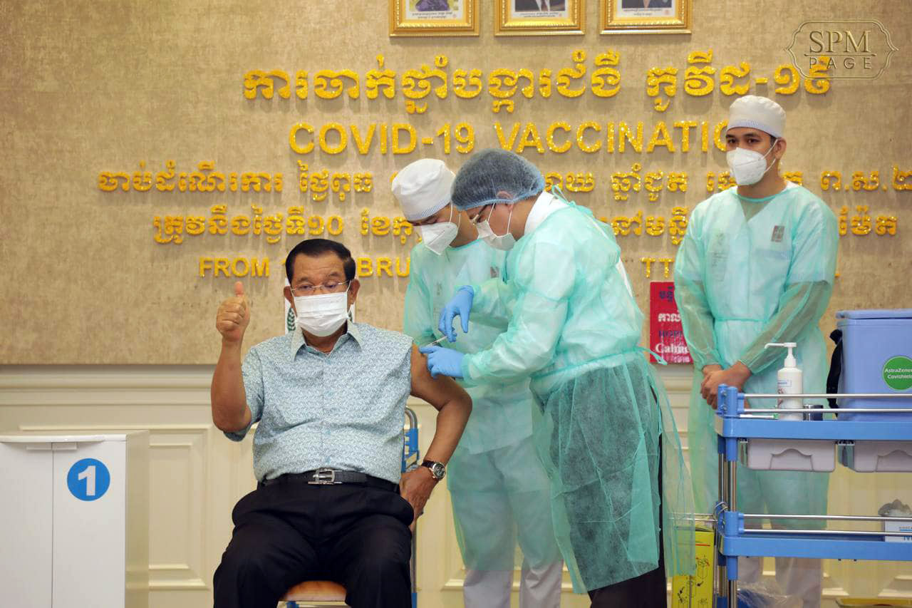 पेनोम पेन,कम्बोडियामा प्रधानमन्त्री तथा उच्च नेताहरुले भारतमा उत्पादित कोभिड–१९ बिरुद्धको कोभिशिल्ड खोप लगाएका छन् ।