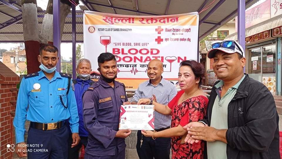 ललितपुर, रोटरी क्लब अफ सैंबु भैंसेपाटीको आयोजनामा रक्तदान कार्यक्रम सम्पन्न भएको छ । रक्तदान कार्यक्रमलाई नेपाल रेडक्रस सोसाइटी भैंसेपाटी उपशाखाले साथ दिएको थियो। रोटरीद्धारा आयोजित रक्तदान कार्यक्रममा