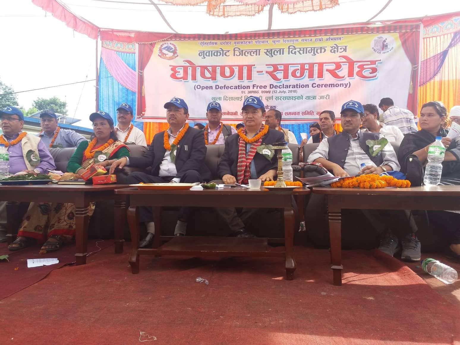 नुवाकोट,ऐतिहासिक धरोहर नुवाकोटको पहिचान, खुला दिशामुक्त समाज हाम्रो अभियान भन्ने नाराको साथ नुवाकोट जिल्लालाई आजदखि खुला दिशामुक्त क्षेत्र जिल्ला घोषणा गरिएको छ ।