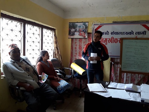 बेलकोट नगरपालिका वडा ८ का वडाध्यक्ष भोज प्रसाद पुडासैनी र सस्थाका प्रमुख कार्यकारि अधिकृत रामहरि दाहालले