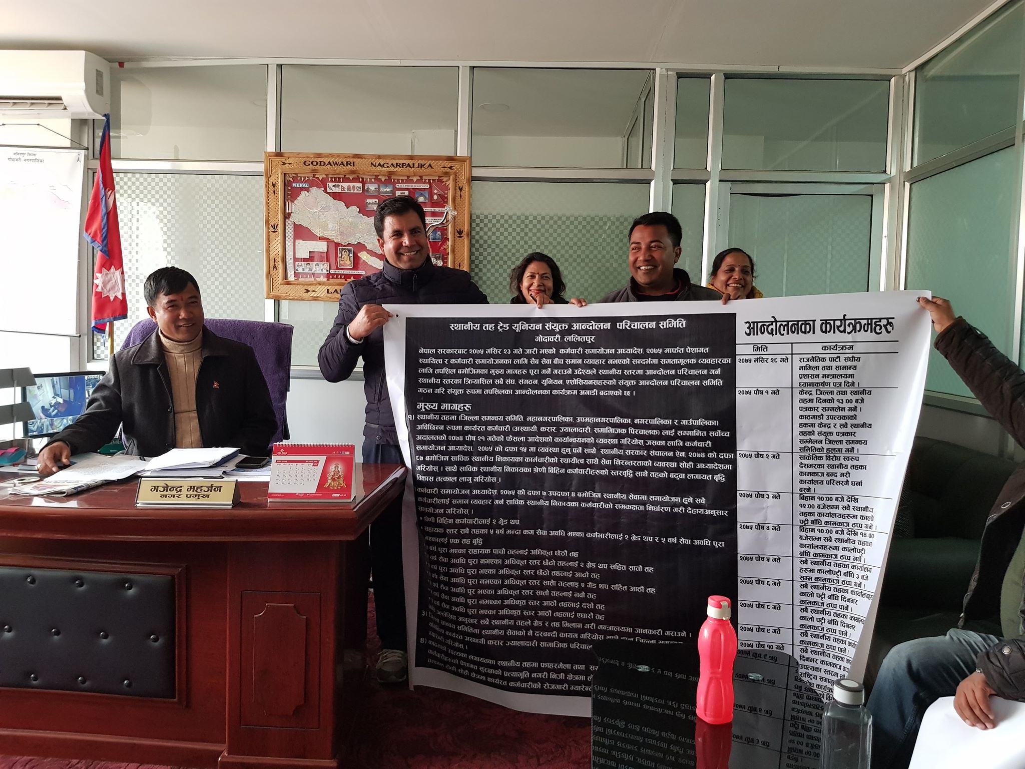 ललितपुर, स्थानीय तहका कर्मचारीहरुले मंसिर २३ गते नेपाल सरकारले जारी गरेको कर्मचारी समायोजन अध्यादेशको विरोधमा देशभरका स्थानीय तहको कार्यालयमा कामकाज ठप्प पारी ज्ञापनपत्र बुझाएका छन्।