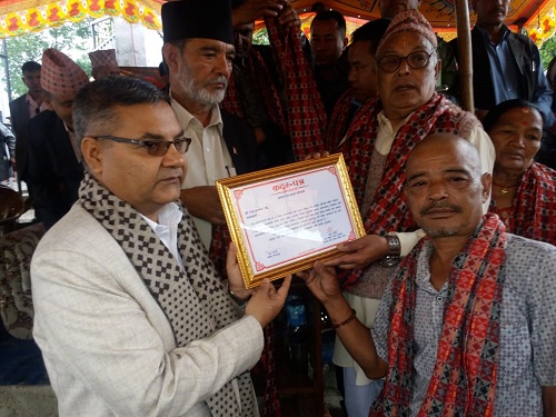 जिल्ला समन्वय समितिका प्रमुख कृष्ण गोपाल तामाङ र निमित्त समन्वय अधिकारी युग बहादुर खड्रकाले एक कार्यक्रम