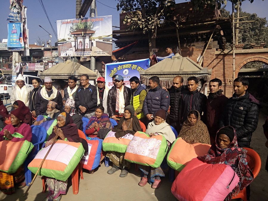 नवराज सापकोटा पनौती । पनौतीमा रहेको गोरखनाथ युबा क्लबले आफ्नो स्थापना दिबसको अबसर पारेर जाडोको समयमा न्यानो बाड्ने हाम्रो प्रयास भन्ने मुल नाराका साथ बृद्ध बृद्धाका लागि कम्बल वितरण गरेको छ ।
