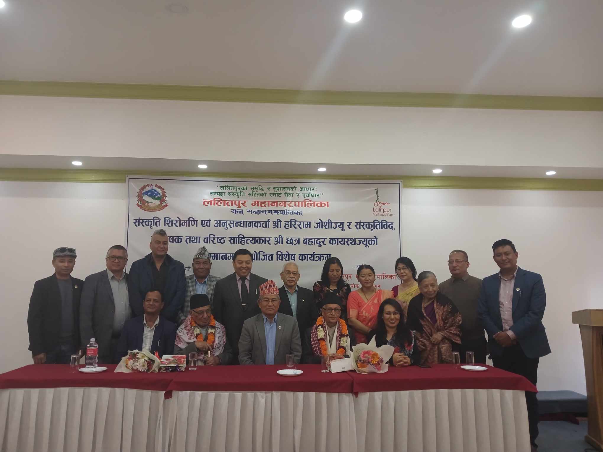 ललितपुर, ललितपुर महानगरले संस्कृति संरक्षणको क्षेत्रमा निरन्तर लागिपरेका संस्कृति शिरोमणि, अनुसन्धानकर्ता एवम् पुरातत्वविद् हरिराम जोशी र संस्कृतिविद्, अन्वेषक र वरिष्ठ साहित्यकार छत्रबहादुर कायस्थलाई विशेष सुविधा दिएर सम्मान गरेको छ