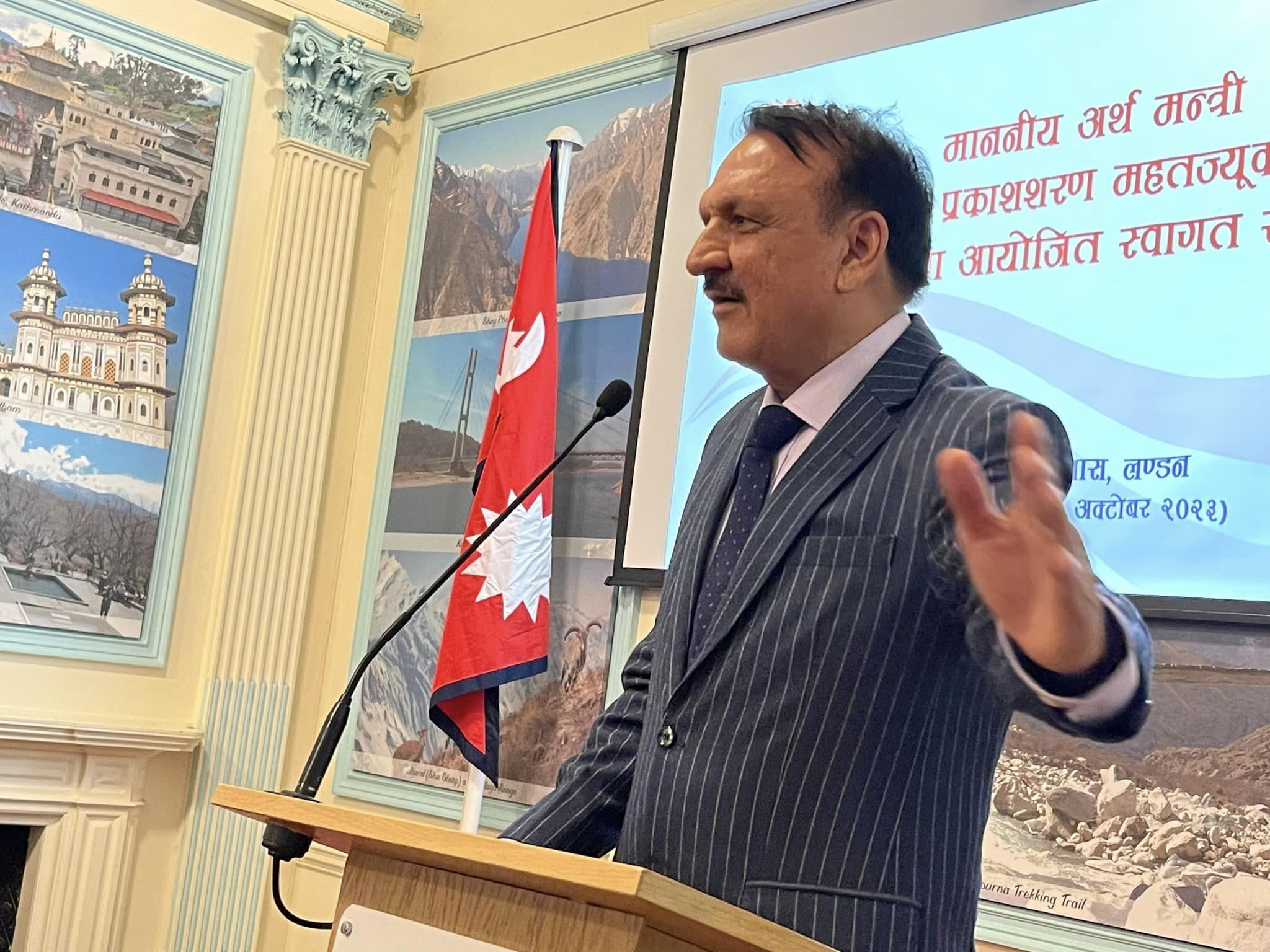 लन्डन । अर्थमन्त्री डा. प्रकाशशरण महतले नेपाली डायसफोराले नेपालप्रति प्रेम देखाउने अहिले उपयुक्त समय भएको बताएका छन् । नेपाली दूतावास लन्डनमा आयोजित स्वागत तथा सम्मान कार्यक्रमलाई सम्बोधन गर्दै मन्त्री डा. महतले भने, ‘नेपाली डायसफोराले