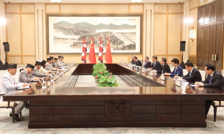 काठमाडौँ । प्रधानमन्त्री पुष्पकमल दाहाल ‘प्रचण्ड’ र चीनका राष्ट्रपति सी चीनफिङबीच ऐतिहासिक भेटवार्ता सम्पन्न भएको छ । चीनको साताव्यापी भ्रमणका लागि शनिबार हाङ्चाउ आइपुगेका प्रधानमन्त्री दाहालले चीनियाँ राष्ट्रपति सीसँग द्विपक्षीय