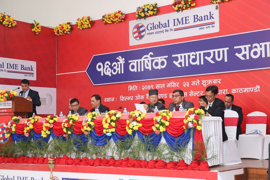 काठमाडाैं, २३ मंसिर।ग्लोबल आइएमई बैंकको १६औँ वार्षिक साधारणसभा शुक्रबार सम्पन्न भएको छ । साधारणसभाले ग्लोबल आइएमई र बैंक अफ काठमाण्डू मर्जर सम्बन्धमा सञ्चालक समितिको तर्फबाट प्रस्तुत प्रतिवेदनमाथि छलफल