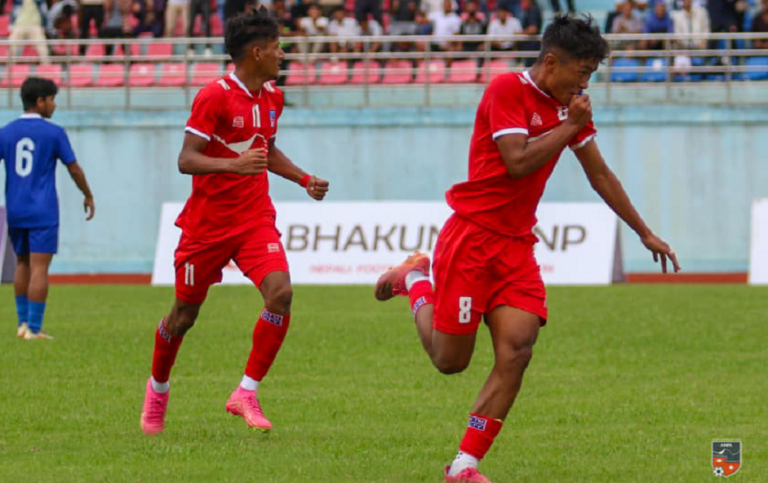 काठमाडौं । माल्दिभ्सलाई हराउँदै नेपाल साफ यू–१९ च्याम्पियनसिपको सेमिफाइनलमा पुगेको छ । सोमबार दशरथ रंगशालामा माल्दिभ्सलाई ४–१ गोल अन्तरले हराउँदै नेपालले अन्तिम चारमा स्थान पक्का गरेको हो