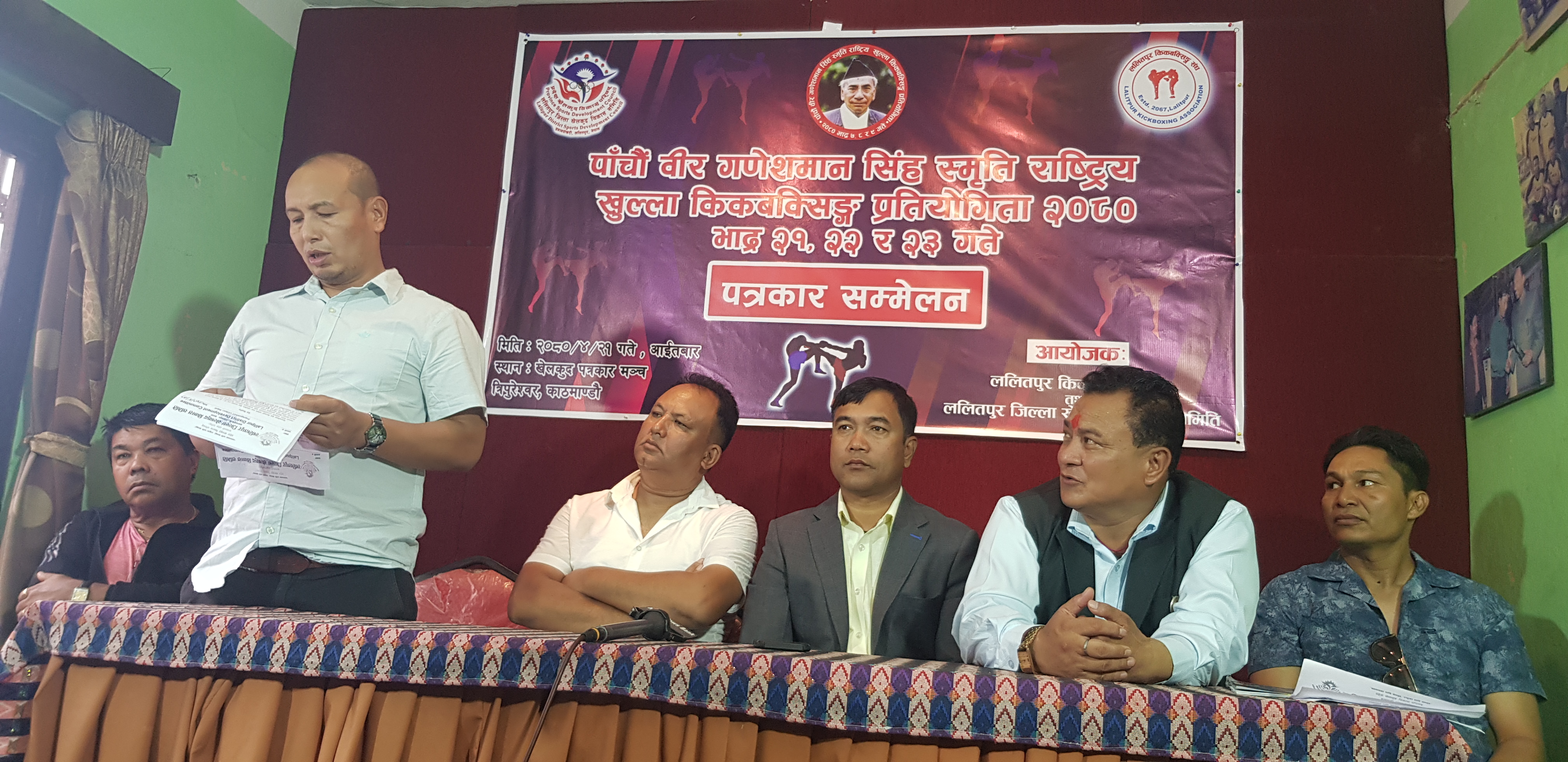 ललितपुर , गणेशमान सिंहको स्मृतिमा ‘पाँचौं वीर गणेशमान सिंह स्मृति राष्ट्रिय खुल्ला किक बक्सिङ प्रतियोगिता’ भाद्र महिनाको २१ गतेबाट सुरु हुने भएको छ। ललितपुर किक बक्सिङ संघ तथा ललितपुर जिल्ला खेलकुद