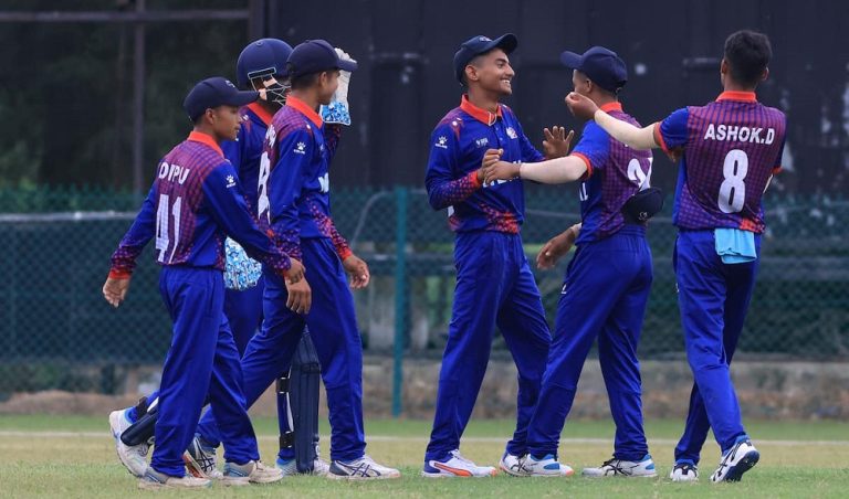 काठमाडौं । एसीसी इस्ट जोन यू-१६ प्रतियोगिताको समूह चरणको अन्तिम खेलमा घरेलु टोलीलाई पराजित गर्दै नेपाल समूह ए को विजेता बनेको छ । मलेसियाकाे बायोमास ओभल क्रिकेट मैदानमा नेपालले मलेसियालाई ८५ रनले पराजित
