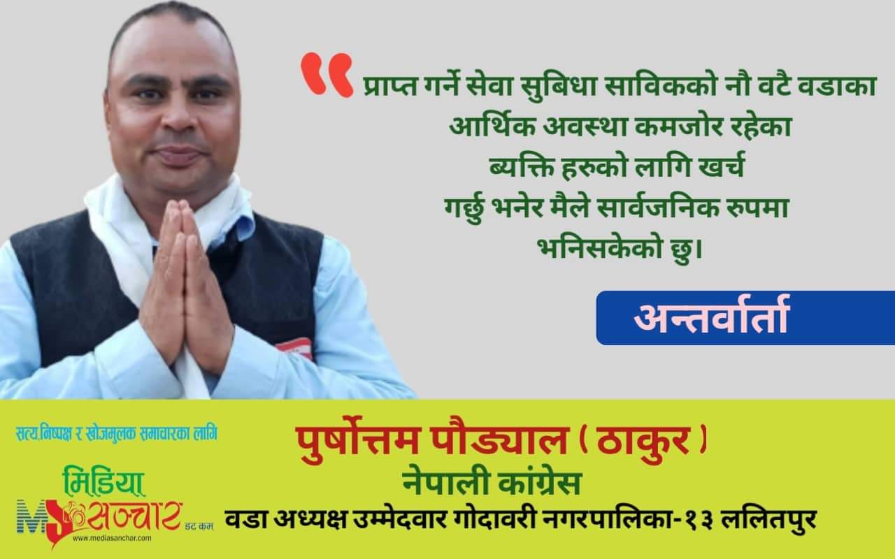 स्थानीय निर्वाचनको मिति नजिकिदै गर्दा गोदावरी नगरपालिकाको माहोल तातिएको छ। गोदावरी नगरपालिका-१३ झरुवारासी नेपाली कांग्रेसका सशक्त उम्मेदवारका रूपमा पुर्शोत्तम पौड्याल (ठाकुर) चुनावी मैदानमा होमिएका