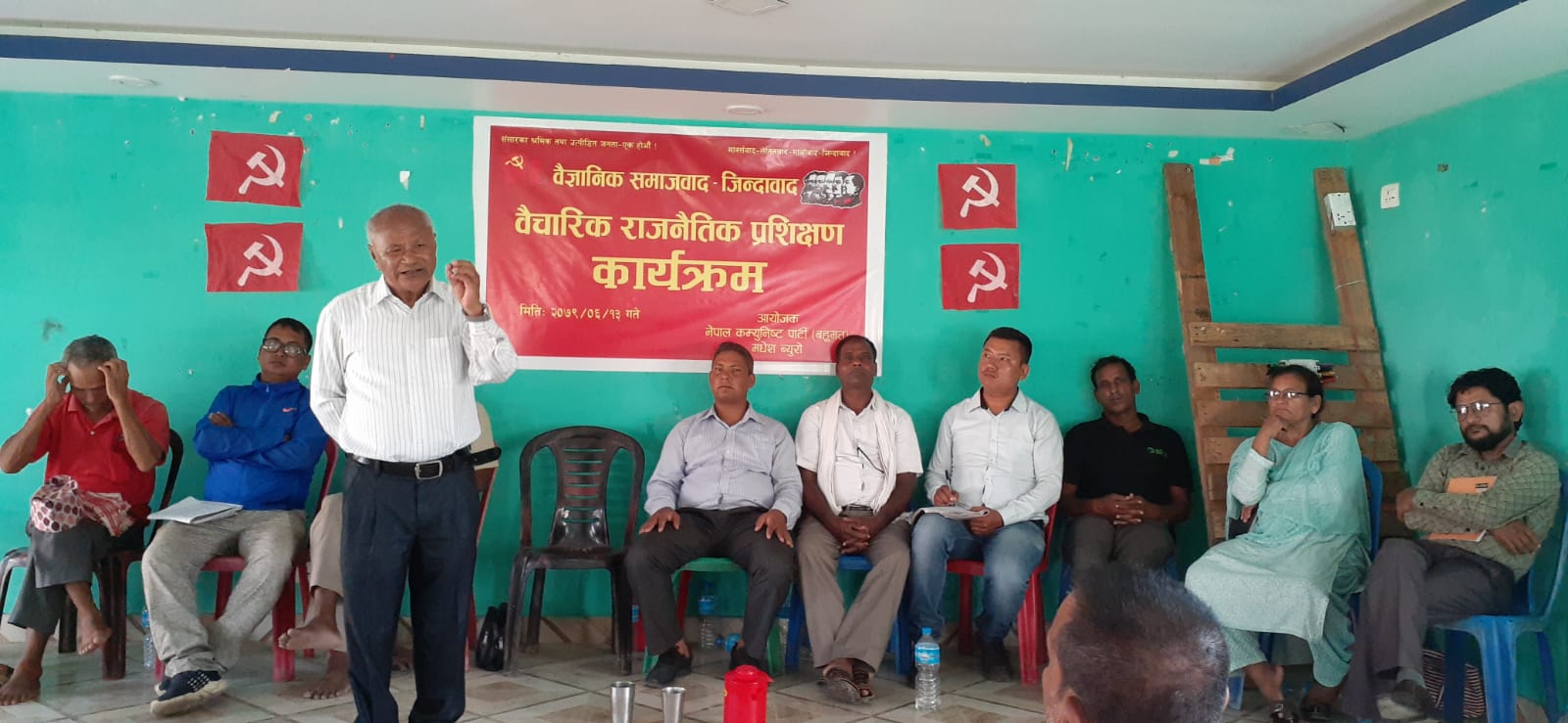 महोत्तरी।नेपाल कम्युनिष्ट पार्टी ( बहुमत)ले देशलाइ सिक्किमिकरण र फिजिकरण हुनबाट जोगाउने भन्दै आसन्न निर्वाचन बहिस्कार गर्ने निर्णय गरेकाे छ । मधेश प्रदेशको ब्युरोस्तरीय प्रशिक्षण भेलाले संसदवादी