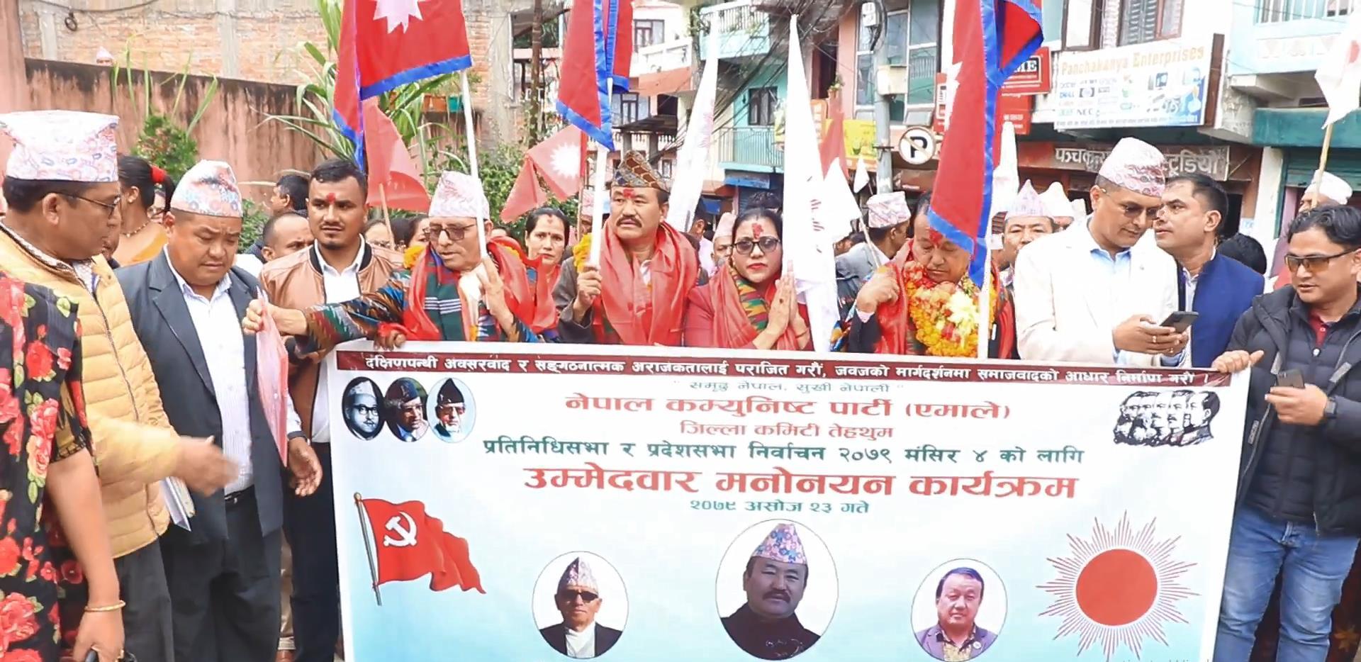 तेह्रथुम, २४ असोज।आगामी ४ मंसिरमा हुने प्रतिनिधिसभा तथा प्रदेशसभा निर्वाचनका लागि तेह्रथुममा २८ जनाले उम्मेदवारी दिएका छन् । प्रतिनिधिसभातर्फ १० र प्रदेशसभामा १८ जनाले मनोनयन दर्ता गराएका छन् । निर्वाचन