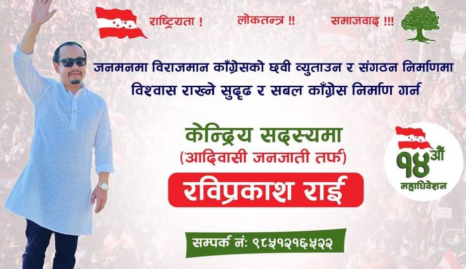 खोटाङ, २२ मंसिर।खोटाङका कांग्रेस नेता रविप्रकाश राईले केन्द्रीय सदस्यमा उम्मेद्वारी दिने घोषणा गरेका छन् । केही समयअघि सम्पन्न जिल्ला अधिवेशनबाट संघीय महाधिबेशन प्रतिनिधि निर्वाचित भएका राईले
