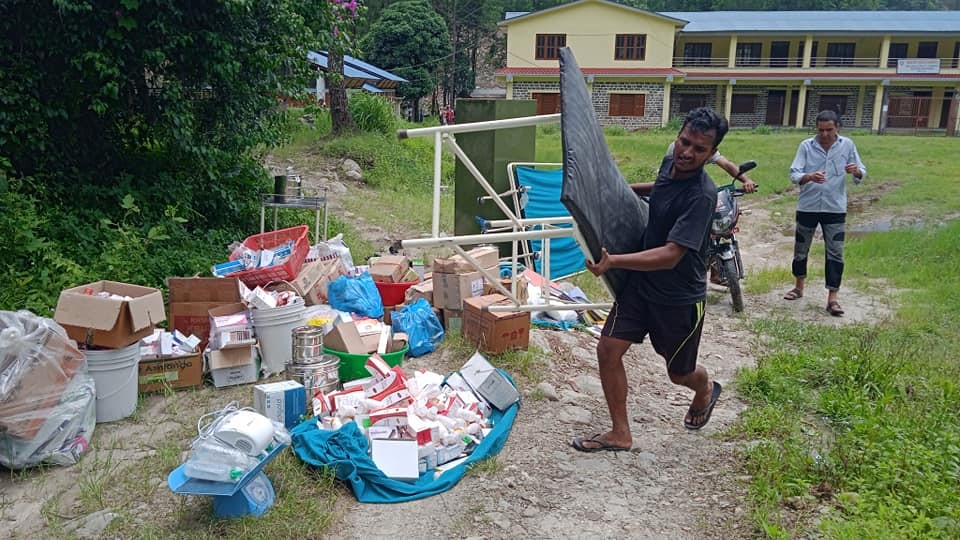 आज बिहान १०ः०० बजे राजमार्गको माथिबाट पहिरो खस्दा सडक अवरुद्ध