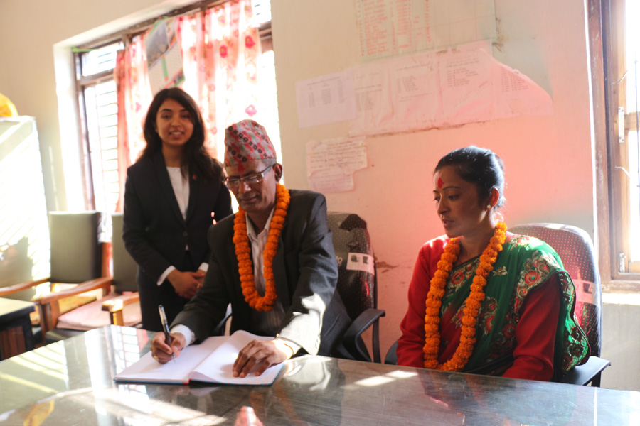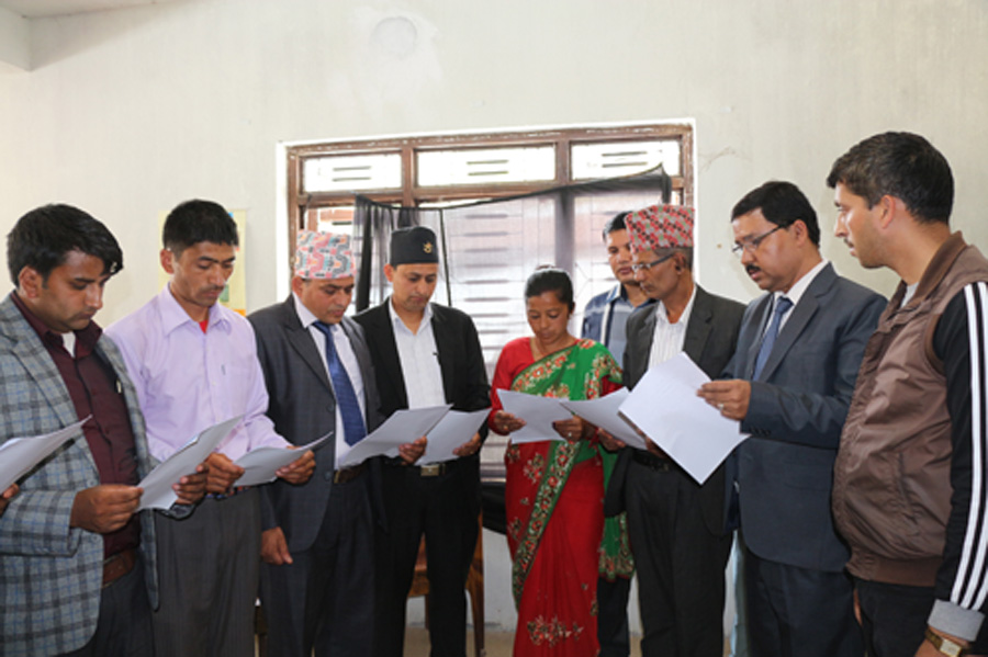 ललितपुर ८ जेठ, महांकाल गाउपालिका प्रमुख रामचन्द्र दाहालले निर्वाचन कार्यालयका प्रमुख निर्वाचन अधिकृत धु्रब कुमार ढकाल संग सपथ लिए संगै गाउँपालिका प्रमुखको कार्यभार सम्हालेका छन् । २०७४ जेठ ५ गते सपथ