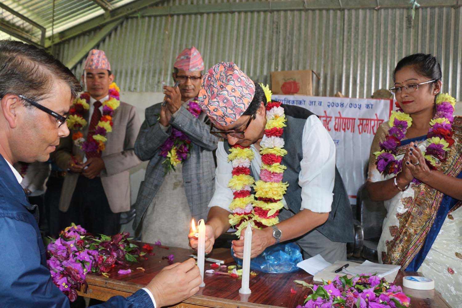 ललिततपुर असार ३० शुक्रबार । महाङ्काल गाउँपालिकाको आ.व. २०७४/०७५ को वार्षिक नीति, कार्यक्रम तथा बजेट घोषणा कार्यक्रम सम्पन्न भएको छ । मिति २०७४ साल असार ३० शुक्रबारको दिन गोटीखेल ललिततपुरमा भएको