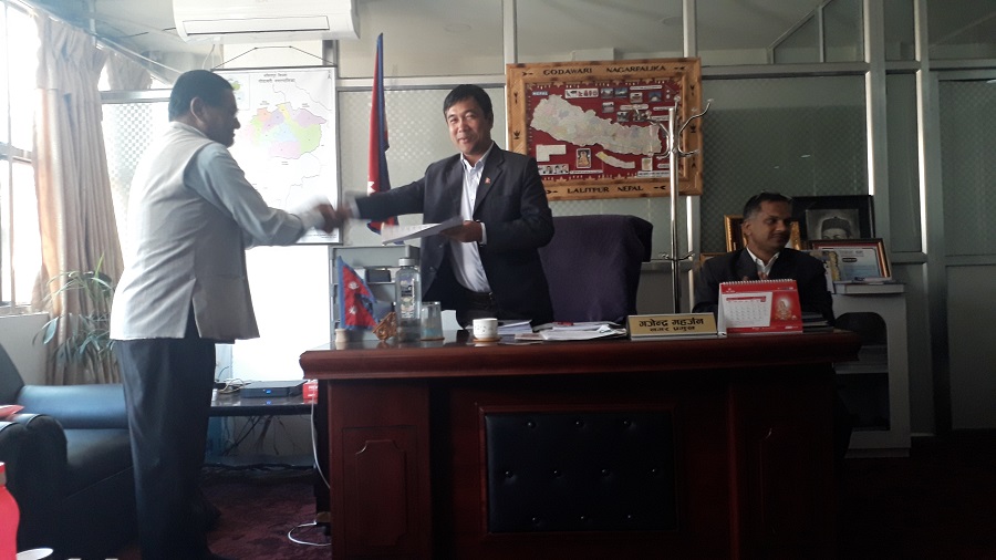 ललितपुर, नेपाल सामुदायिक विद्यालय व्यवस्थापन समिति संघ ललितपुरले आज गोदावरी नगरपालिकाका मेयर गजेन्द्र महर्जनलाई विद्यालय व्यवस्थापन समितिको खारेजीको विरोधमा ज्ञापनपत्र बुझाएको छ।