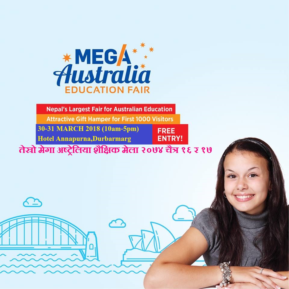 काठमाडौं, वान अप प्रालिले विगतका वर्षहरु झैं यसबर्ष पनि मेगा अस्ट्रेलिया शैक्षिक मेला भएको छ। प्रालिले गर्न लागेको यो तेस्रो मेगा अष्ट्रेलिया शैक्षिक मेला हो।